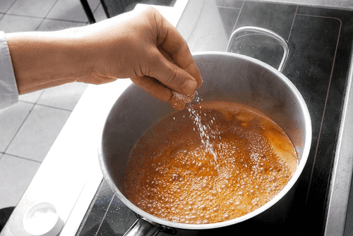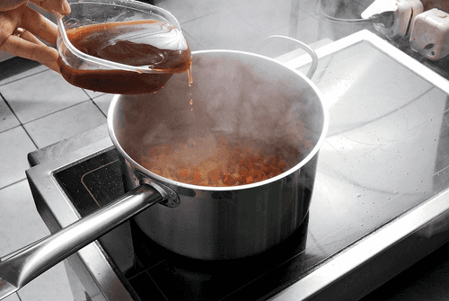 Добавить в сотейник демигляс, перемешать и подождать, пока то, что было желе, превратится в жидкость.