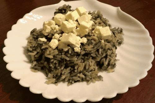Греческая рисовая каша «Spanakorizo» со шпинатом и сыром фета