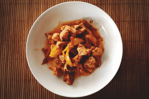 Маринованная индейка с овощами (Tacchino con pepe giallo)