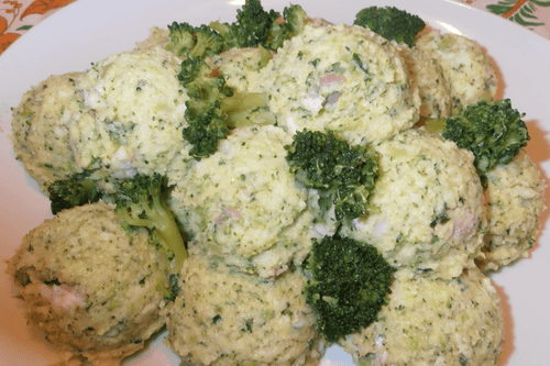 Смазать сливочным маслом (10 грамм) блюдо для запекания и выложить шариками манку (если есть, используйте ложку для мороженого). Выложив один слой шариков, сверху добавьте немного сибаса и брокколи. Сделать второй слой шариков. Выложить оставшийся сибас и брокколи. Посыпать пармезаном, сверху положить кусочки сливочного масла (20 грамм) и запекать 10 минут при 200 градусах.