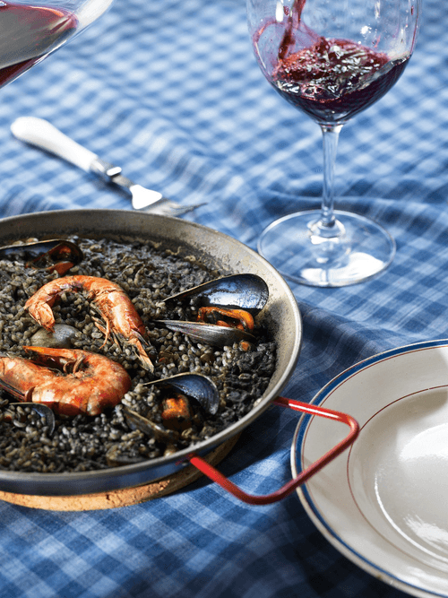Черная паэлья с креветками