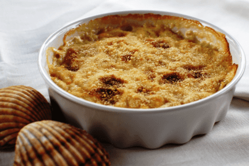 Гребешки и тигровые креветки в соусе бешамель