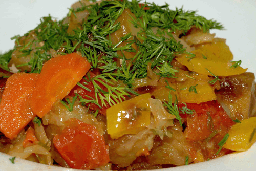 Овощное рагу с болгарским перцем, помидорами, картофелем