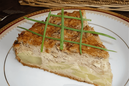Рыбный пирог с картошкой — это душевное и сытное блюдо русской кухни, корни которого уходят в традиции домашней выпечки. Он сочетает нежность копченой рыбы, мягкость запеченного картофеля и тонкую пряность лука, создавая гармоничный вкус. Тесто, легкое и воздушное благодаря сметане и майонезу, бережно обволакивает начинку, превращая пирог в нежную, аппетитную запеканку. Румяная корочка добавляет текстурную изюминку, а аромат копченой рыбы пробуждает аппетит. Такой пирог удобен как для уютного семейного ужина, так и для праздничного застолья. Его можно подавать самостоятельно или дополнить свежими овощами и зеленью. Благодаря простоте приготовления, он становится отличным вариантом для тех, кто хочет быстро и вкусно порадовать себя и близких.