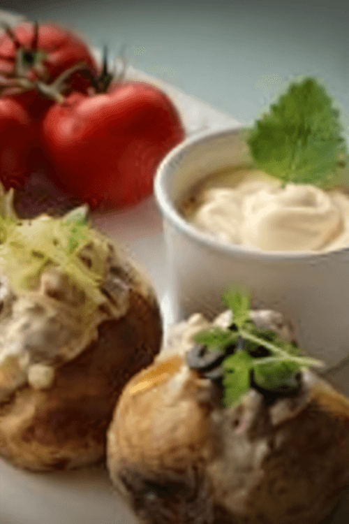 Картофель по-андалузски — это истинное наслаждение для гурманов, вдохновленное традициями солнечной Андалусии. Запеченный в фольге картофель приобретает мягкость и насыщенный аромат, а пикантная начинка из маринованных огурцов, грибов, тунца и оливок создает богатую палитру вкусов. Майонез придает блюду нежность, а зелень и сыр — свежесть и легкую сливочную нотку. Это блюдо идеально подходит как для уютного домашнего ужина, так и для праздничного стола, удивляя своим гармоничным сочетанием ингредиентов и аппетитным видом. Картофель по-андалузски — это гастрономическая симфония, сочетающая простоту и элегантность средиземноморской кухни.