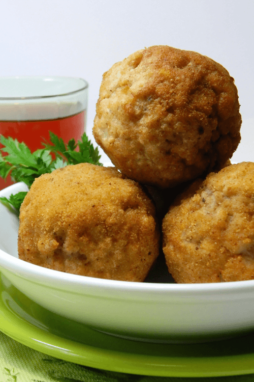 Чтобы не тратить много масла, жарим в небольшой кастрюльке по 4 штучки. Надо, чтобы масло закрывало шарик на половину или больше. Кастрюльку с маслом ставим на огонь и хорошенько нагреваем, потом убавляем огонь и можно жарить! Жарятся они примерно по 5–6 минут до равномерной золотистой корочки. Готовые шарики складываем на салфетку, чтобы убрать лишнее масло.