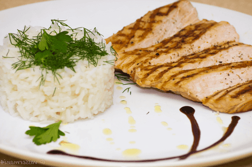 Отбивная из индейки на гриле с рисом и травами