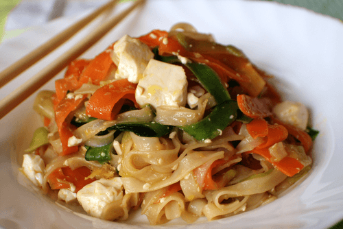 Рисовая лапша с тофу и овощами