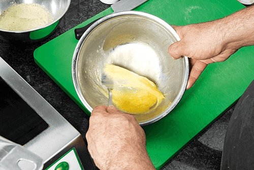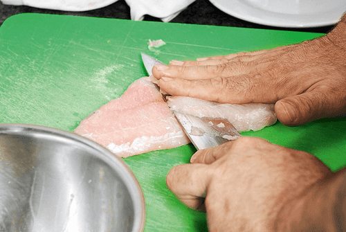 Кусок сома нарезать тонкими, но широкими кусочками — после чего окунуть во взбитое яйцо и обвалять в панировке из кукурузной муки и креольской приправы. Если покажется необходимым, можно добавить в панировку чуть-чуть соли, хотя ее достаточно и в смеси приправ.