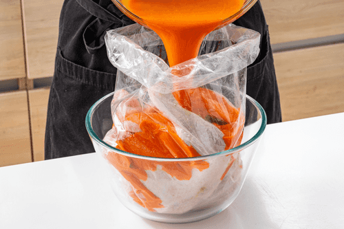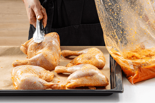 Окорочка поместить в герметичный пакет для маринования, залить приготовленным соусом и убрать в холодильник на несколько часов.