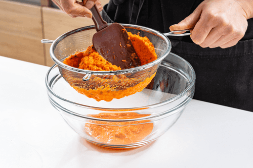 Облепиху пробить блендером до состояния пюре, а затем протереть через сито.
