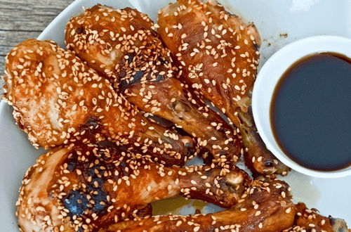 Запеченная курица с имбирем и кунжутом — это гармония вкусов и текстур. Это блюдо, вдохновленное европейской кухней, объединяет пикантность имбиря, сладковатую глубину коричневого сахара и хрустящий аромат кунжута. Куриные ножки, пропитанные кунжутным маслом и специями, становятся сочными внутри и золотисто-хрустящими снаружи. Имбирь придаёт лёгкую пряность, чеснок добавляет насыщенности, а кайенский перец — едва заметную остроту. Такое блюдо идеально подходит как для семейного ужина, так и для праздничного стола. Оно прекрасно сочетается с свежими овощами или лёгким гарниром, а его утонченный вкус может удивить даже искушённых гурманов.