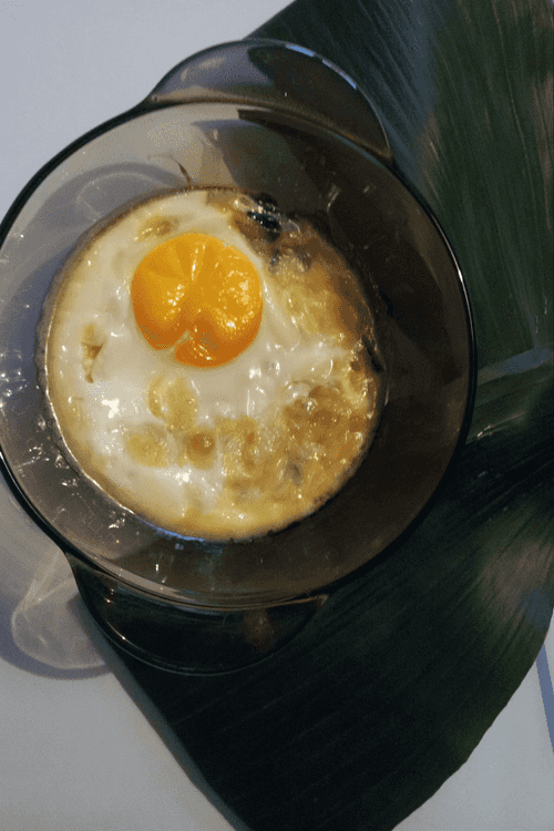 Сверху разбиваем яйцо.
