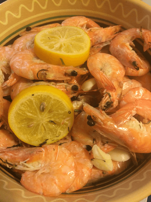 Креветки вареные с лимоном и укропом