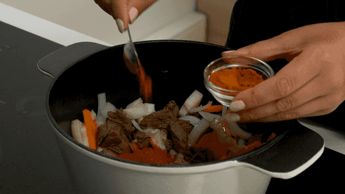 Честная зимняя еда, которая может облагородить любой кусок не слишком нежной духовой говядины. Самые упорные части говяжьей туши на выходе получаются как раз самыми вкусными: в результате длительной термической нагрузки волокна размягчаются, но не теряют мясной насыщенности, а из-за обилия коллагеновых жилок восхитительно густеет соус. Кроме времени, этот рецепт тушеной говядины не требует практически ничего — только зажарку из моркови и лука, которая карамелизирует мясные кусочки, и разного вида перец — душистый, паприку и обычный черный — для аккуратной остроты.