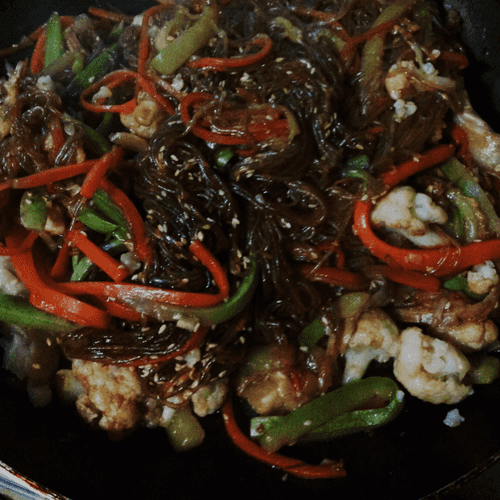 Бобовая вермишель лонгкоу с кабачками и морковью