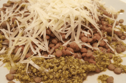 Зеленая чечевица с песто и пармезаном