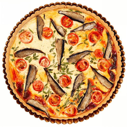 Киш со шпротами и помидорами черри