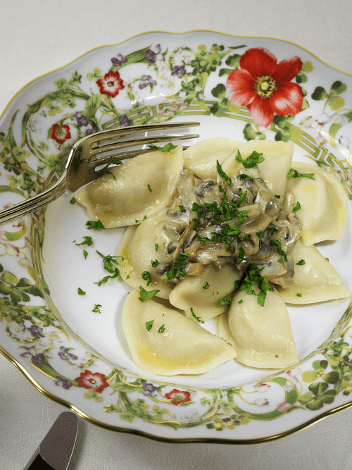 Вареники с телятиной — традиционное блюдо русской кухни, сочетающее нежность телячьего мяса и воздушность шелковистого теста. Их корни уходят в глубь веков, когда вареники были символом домашнего уюта и заботы. В этом рецепте начинка приобретает особую насыщенность благодаря грибам, луку и специям, создавая богатый и гармоничный вкус. Вареники подаются с ароматными грибами в сметанном соусе и свежей петрушкой, которая придаёт блюду свежесть. Это идеальное угощение для уютных семейных обедов и торжественных ужинов, согревающее душу и пробуждающее гастрономическую ностальгию.