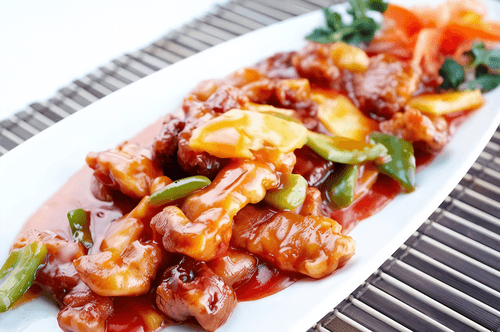 Свинина с персиками в соевом соусе со специями
