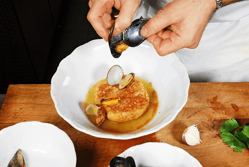 Классический рецепт рыбацкого хлеба основывается на использовании забытого хлеба и морской воды, которая служит для его посолки и размягчения. Шеф-повар заведения Bontempi адаптировал этот рецепт под московские реалии, используя вместо морской воды сок, полученный из ракушек мидий.