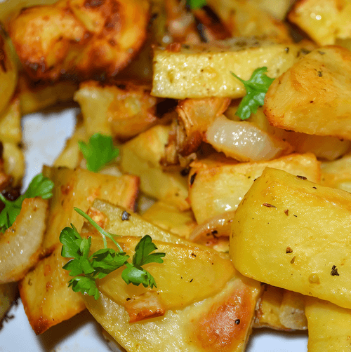 Запеченный картофель по-итальянски — это простое, но изысканное блюдо, которое вобрало в себя ароматные традиции итальянской кухни. Картофель, запеченный с луком, чесноком и смесью итальянских трав, приобретает насыщенный, пряный вкус и аппетитную золотистую корочку. Оливковое масло extra virgin подчеркивает его нежность, а тертый пармезан добавляет тонкие сливочные нотки. Это блюдо идеально сочетается с мясными и овощными гарнирами, а также может служить самостоятельным угощением. Истоки рецепта уходят в южные регионы Италии, где простые ингредиенты превращают повседневную еду в гастрономическое наслаждение. Запеченный картофель станет великолепным дополнением к семейному ужину или уютному вечеру в средиземноморском стиле.