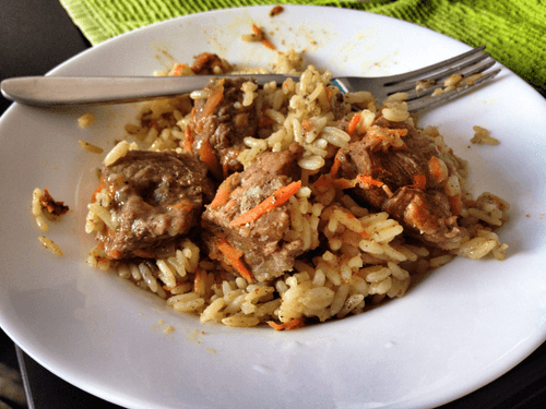 Я подаю плов с солеными кислыми огурцами и узваром (сочетание пряного вкуса плова, соленых огурцов и насыщенного ароматного узвара — идеально). Не забывайте накрывать его крышкой, чтобы рис не обветрился и не высох.