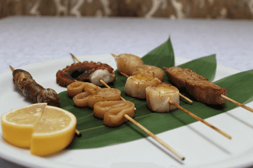 Якитори — это классические японские шашлычки, ставшие неотъемлемой частью японской гастрономии. Их происхождение уходит корнями в эпоху Эдо, когда уличные торговцы начали готовить мясо на углях. Сегодня якитори — это гармония нежного вкуса морепродуктов, тунца и куриных сердечек, пропитанных насыщенным маринадом из соевого и рыбного соуса с нотками табаско. Обжаренные до золотистой корочки, они сохраняют сочность и нежность, а заключительное покрытие маринадом на мангале усиливает их аромат. Блюдо подается с соусом терияки, свежими травами и лимонной долькой, подчеркивающей яркие морские оттенки. Эти шашлычки идеально дополняют дружеские встречи и уютные вечера, привнося нотку традиционной японской атмосферы в каждое мгновение.