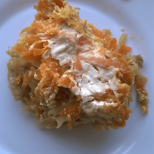 Горячий салат из минтая с овощами и сметаной — это простое, но удивительно вкусное блюдо, родом из русской кухни. Минтай, нежная и мягкая белая рыба, обжаривается с ароматными специями, а затем укладывается в слои с луком и морковью. Эти овощи придают блюду сладость и насыщенность, а щедрая порция сметаны делает его необычайно сочным и мягким. Запеченный в духовке, салат приобретает приятную текстуру и нежный вкус, в котором гармонично переплетаются солоноватые, сливочные и сладковатые оттенки. Это блюдо идеально подходит как горячая закуска, а также как самостоятельный сытный ужин. Оно особенно хорошо сочетается с свежей зеленью и хрустящим хлебом, создавая уютную домашнюю атмосферу. Исторически, подобные рыбные запеканки были популярны в русских домах, ведь они просты в приготовлении и очень питательны.