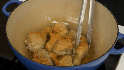 Обжарить ножки на огнеупорной сковороде на масле десять минут со всех сторон.
