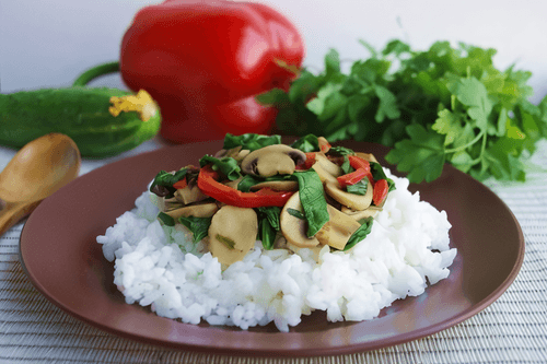 Рис с грибами, шпинатом и сладким перцем