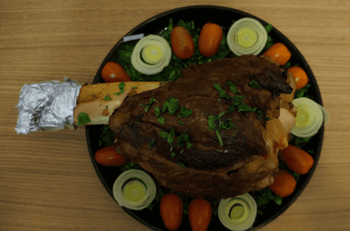 Запеченная говяжья рулька — это воплощение русской деревенской кухни, где вкус и простота сочетаются в совершенстве. Старинное блюдо, любимое охотниками и крестьянами, обладает насыщенным мясным ароматом и нежной текстурой, благодаря длительному запеканию. Обжаривание перед запеканием создает аппетитную корочку, сохраняя сочность мяса внутри. Пропитанная оливковым маслом, солью и черным перцем, рулька приобретает богатый, насыщенный вкус, который идеально сочетается с запеченным картофелем или свежими овощами. Это блюдо идеально подходит для торжественного ужина или семейных посиделок, наполняя дом теплом и уютом. Подавать его лучше с ароматными специями, свежей зеленью и бокалом красного вина для завершения гастрономического наслаждения.
