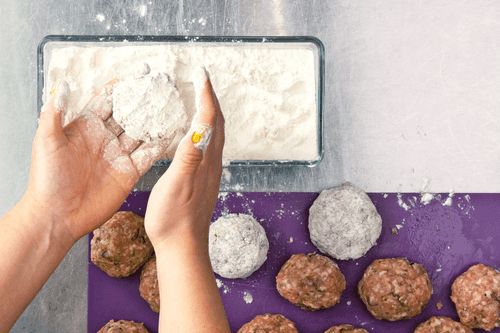 Смешать и слепить 20 одинаковых шариков. Затем слегка расплющить и придать форму котлеток. Обвалять в муке.
