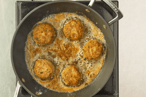 Пожарить котлетки по шесть минут со всех сторон. Переложить на бумажные полотенца.