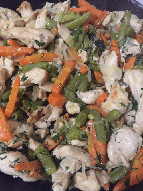 Курица со стручковой фасолью и овощами в сливочном соусе
