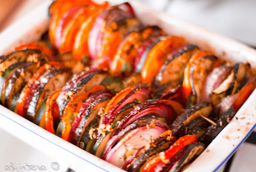 Тиан, известный также как рататуй, — это яркое и ароматное блюдо французской кухни, родом из Прованса. Оно восхищает простотой и насыщенным вкусом свежих овощей, запеченных в духовке с оливковым маслом и пряными травами. Баклажаны, цукини, помидоры и красный лук нарезаются тонкими кружочками и аккуратно выкладываются слоями, создавая живописную палитру цветов. Запекание придает овощам мягкость и насыщенность, а чеснок и тимьян добавляют тонкие пряные нотки. Тиан можно подавать как самостоятельное блюдо или в качестве гарнира к мясу и рыбе. Его легкость и натуральность делают его идеальным выбором для летнего обеда или ужина. Традиционно готовится в керамической форме, которая помогает равномерно распределять тепло и сохранять сочность овощей.