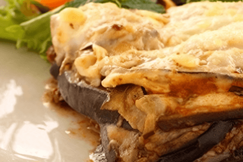 Баклажаны выкладываем верхним слоем на фарш. Заливаем соусом мусаку в мультиварке. Продолжаем выпекать мусаку в мультиварке еще 20 минут на режиме «Выпечка». Мусака сверху должна зарумяниться.