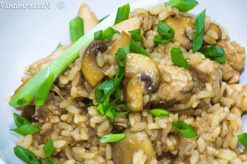 Жареный рис с курицей и грибами