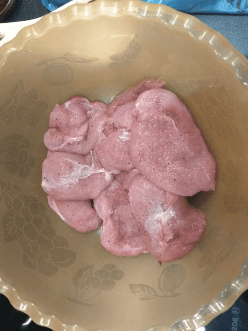 Филе индейки режем на тонкие пласты и выкладываем в миску, пересыпая специями и солью. Затем накрываем крышкой, сверху кладем какой-нибудь груз и оставляем мариноваться все на 25–30 минут.
