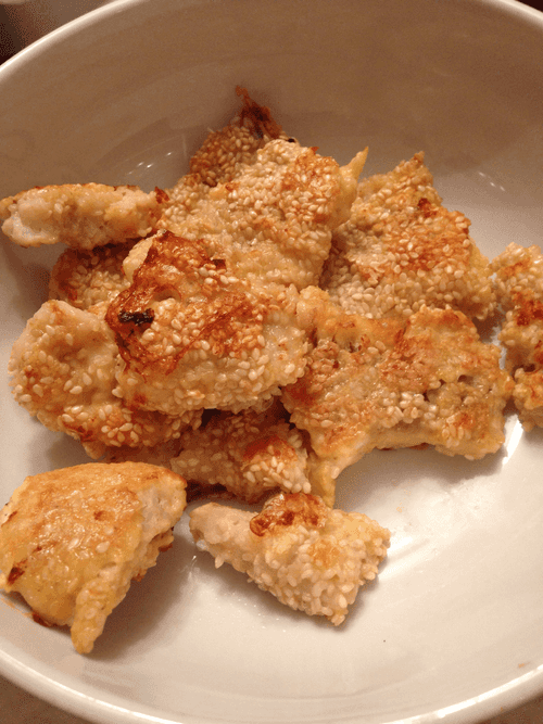 Рыбу обвалять сначала в муке, затем окунуть в яйцо, затем обвалять в кунжуте.