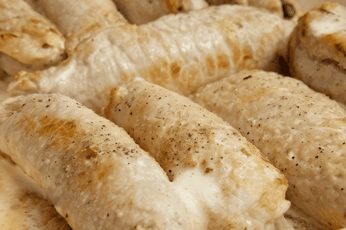 Готовые рулетики перекладывайте со сковороды в емкость для запекания. Добавьте около 1,5 стакана воды. Полейте рулетики сливками. Посыпьте черным молотым перцем и солью. Поставьте в предварительно разогретую духовку. Запекайте при температуре 180 градусов около 30 минут. Подавайте горячим в качестве основного блюда с гарниром на ваш вкус.