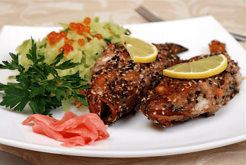 Морской окунь в кунжутной панировке