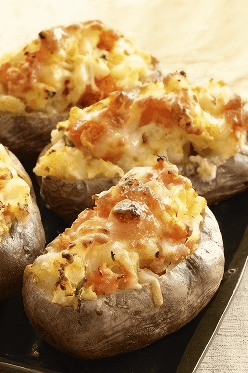 Запеченный картофель с гаудой и сметаной — это уютное и простое блюдо русской кухни, которое радует своим насыщенным вкусом и нежной текстурой. Исторически запеченный картофель был популярным в деревенской кухне, где использовались доступные ингредиенты для создания сытных и ароматных блюд. В данном рецепте хрустящая кожура картофеля скрывает мягкую, сливочную начинку, обогащенную пикантной гаудой и свежестью лука. Запекание придает сыру аппетитную золотистую корочку, а сметана смягчает вкус, делая его гармоничным. Это блюдо отлично подходит как самостоятельный ужин или закуска, а также может служить отличным гарниром к мясным и овощным блюдам. Подавайте его горячим, наслаждаясь ароматом и глубиной вкуса.
