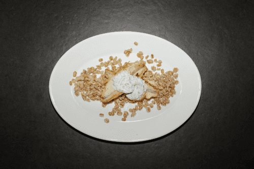 Корюшка с огуречным таратором и полбой