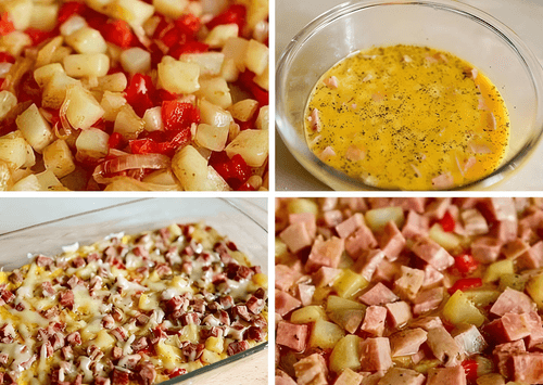 Взбить яйца, добавить к ним ветчину.