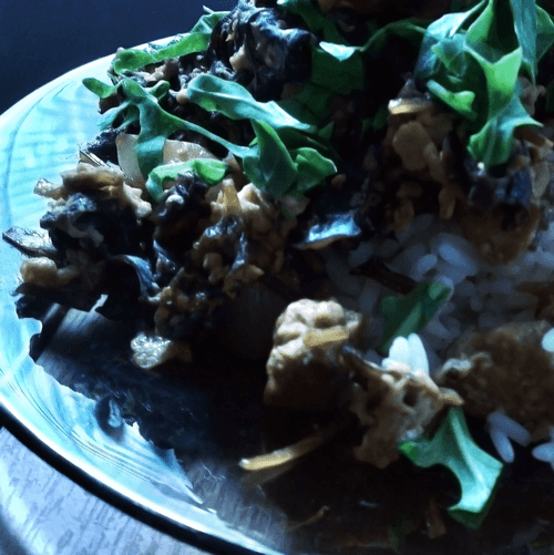 Рис с заправкой из тофу, лука и древесных грибов