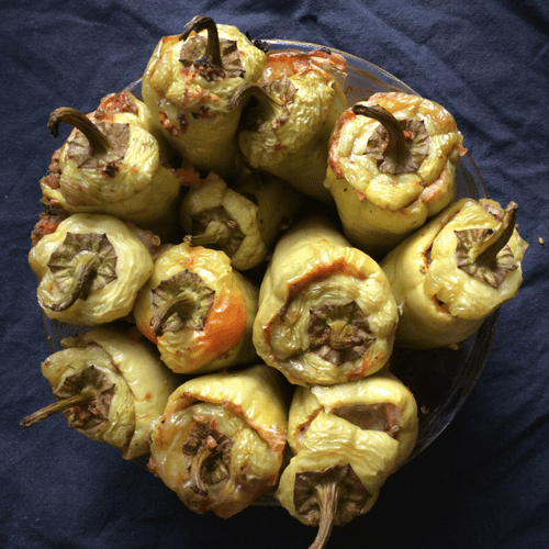 Фаршированный перец болоньезе с зеленой гречкой