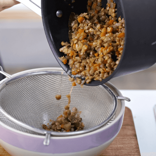 Всыпьте чечевицу и добавьте 1000 мл воды, уменьшите огонь и доведите до кипения.