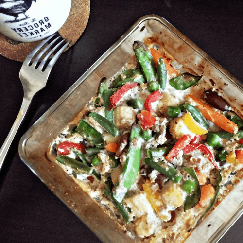 Затем смесь выложить в форму для запекания и на 15 минут отправить в духовку. Чтобы не пересушить овощи можно добавить кипяченую воду.