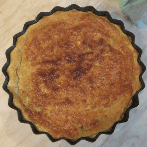 Форму для выпечки смазать оливковым маслом. Затем выложить фарш, чтобы он закрывал дно формы. Массу из муки, яиц и кабачков влить в форму для выпечки.